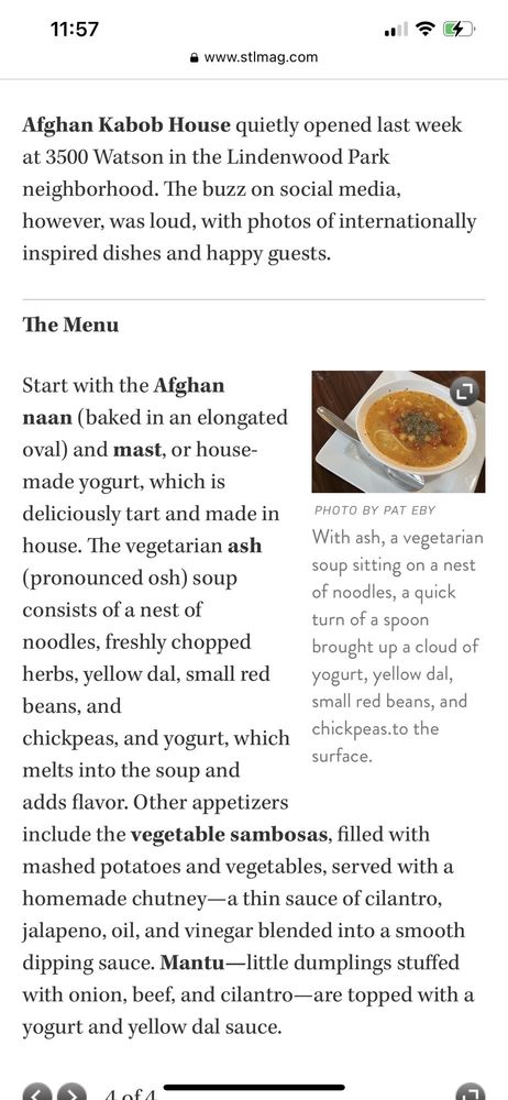 Introducing Afghan Kabob House, a Middle Eastern restaurant located at 3500 Watson Rd in St. Louis, MO. Known for its flavorful dishes and welcoming ambiance, this spot offers delivery, takeout, and outdoor seating. The menu boasts a variety of options, from the popular ASH Noodle soup and Beef Wrap to the delectable Aushak dumplings and Mantu stuffed with ground beef. With a focus on fresh ingredients and traditional flavors, Afghan Kabob House caters to both meat lovers and vegetarians. Don't miss out on their Kids Menu, featuring dishes like Chicken Nuggets and Grilled Beef Skewers. The combination of authentic cuisine, friendly service, and a relaxed atmosphere make Afghan Kabob House a must-visit for food enthusiasts in the area.